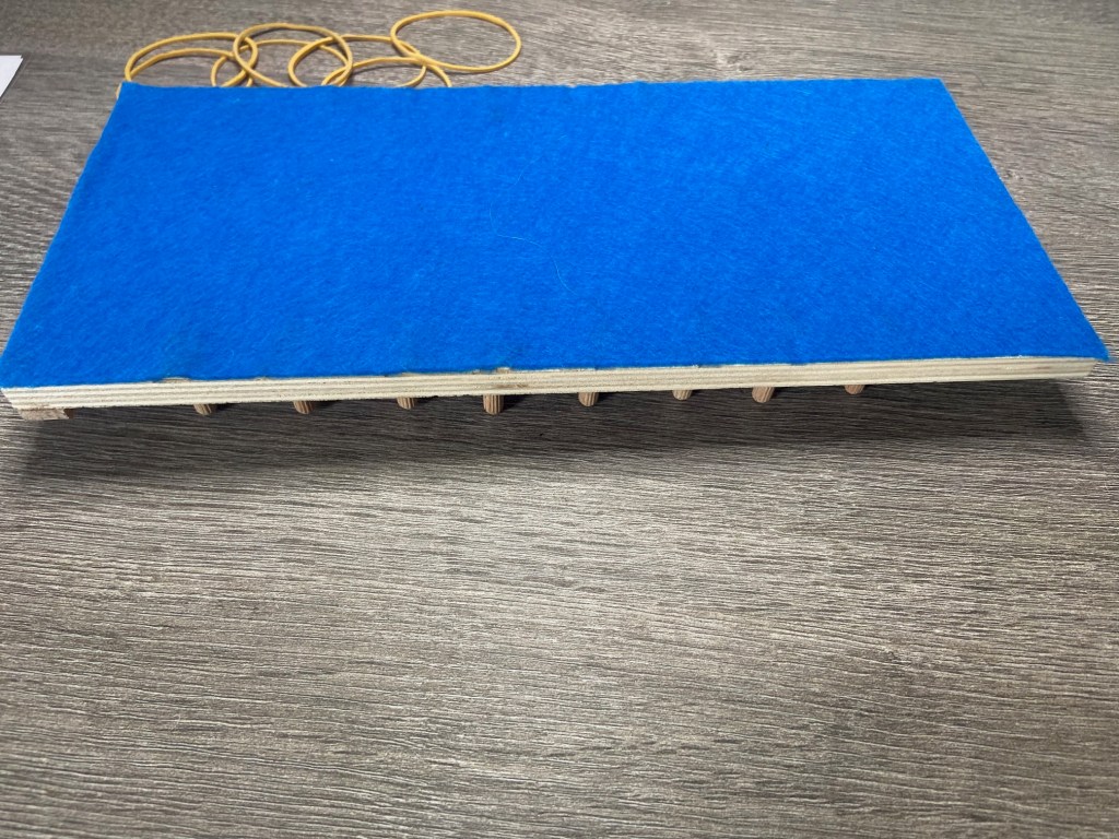 Sobald die Dübel eingeklebt sind, sind eure Bretter schon einsatzbereit. Ich habe mit einem Sprühkleber noch Filz unter die Bretter geklebt, das reduziert die Geräuschkulisse im Unterricht, sieht schöner aus und kaschiert ein wenig das ausgebrochene Holz, welches es durch das Bohren gab.