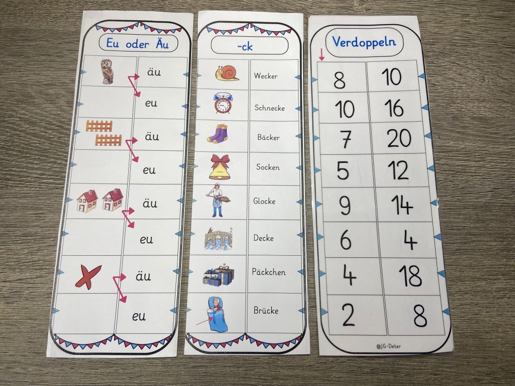 Ich habe die Aufgabenblätter so erstellt, dass Sie ca. 9,5cm breit sind (wenn Sie gefaltet sind) und die breite erhöht sich leicht, wenn man diese laminiert. Wenn ihr das erste Aufgabenblatt erstellt habt, dann druckt es aus und faltet es zurecht.